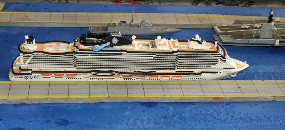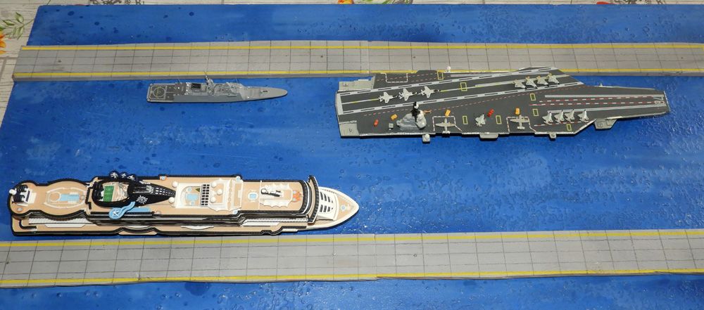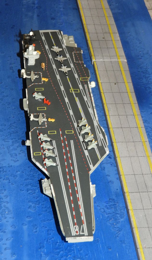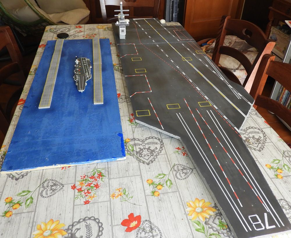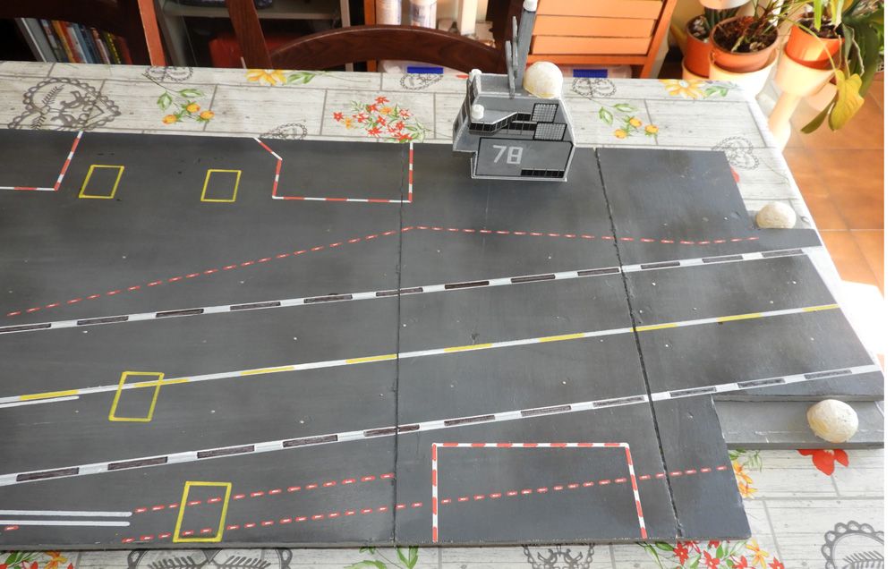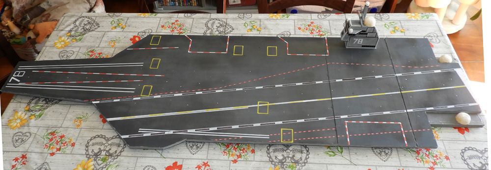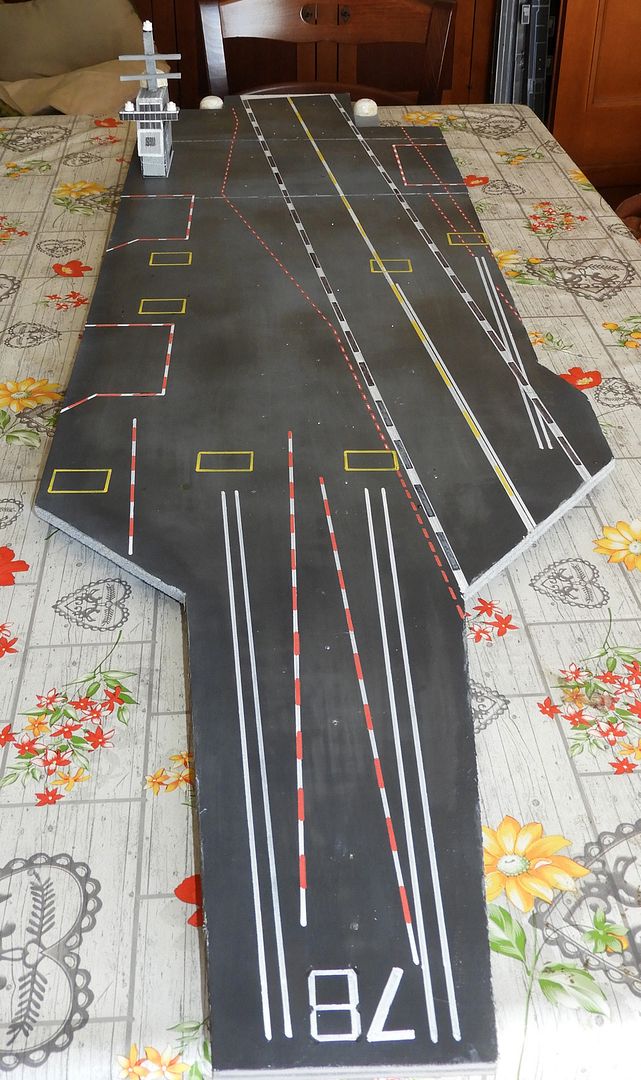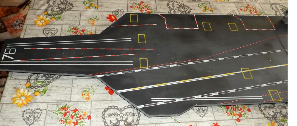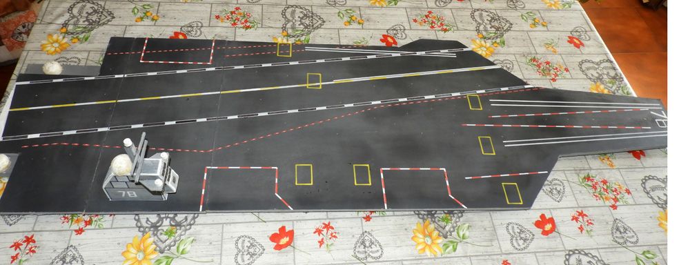 In scala 1:200 la portaerei sarebbe dovuta essere lunga 2,5 metri, impossibile da fare perchè non ho spazio, quindi ho dovuto trovare dei compromessi e l'ho realizzata di circa 1,8 metri. Comunque notevole.